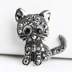 Rhinestone Cat Kitten Brooch Pin Black Silver Sparkle Scarf Hat Coat NEW GIFT