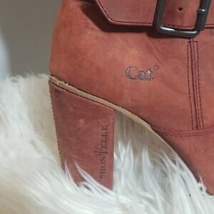 Knee high Distressed Leather CAT Boots in great condition. There are some minor blemishes other than the natural distressing. Please see all photos. Beautifully kept two tones boots in gorgeous reddish and pink. Red leather has a distressed or dyed look.