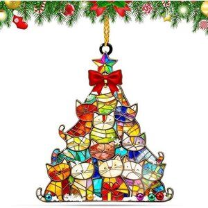 Cat Christmas Ornaments Gift for Cat Lovers & Home Decor Holiday Cat Decor (1pc)