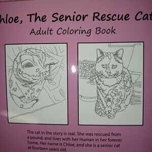 This coloring book is about a cat with patches of different colors. Her name is Choe. She is in a pound and wants to be adopted. Will anyone want her? Twenty pictures to color. Nice white paper, not pulp. New.