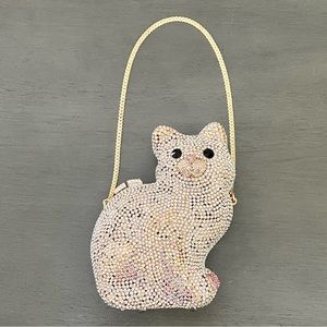 Cat Crystal Rhinestone Pastel Pink Kitten Clutch Purse Bag w/ Gold Chain Strap