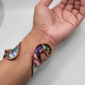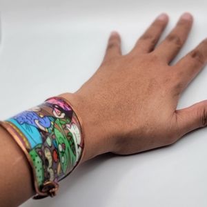 Bracelets are intricately handmade made w/recycled, recyclable, nontoxic, eco-friendly materials. Each has an authentic copper structure & are sealed with a sealant that makes the bracelet 80% moisture resistant (from sweat or etc.). DO NOT immerse in water. Length ranges between approximately 6-7 inches. Each is slightly flexible to open and close to fit arm. They take 10-12 hours to create w/love. Oxidation & aged look is normal & enhances the design of jewelry. Do not stretch or open too much. Slightly polish copper if needed.