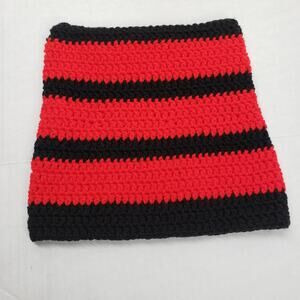 Cat Ear Beanie Crochet Hat Black Red Striped Handmade Knit Kitty Grunge Winter