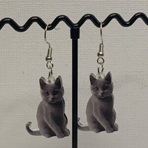 Cat Earring, Fur Baby Earring, Grey Cat Earring, Silly Earring, Cute Earring