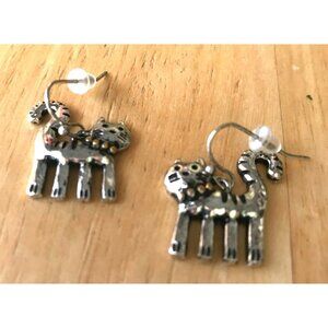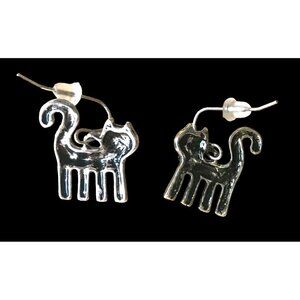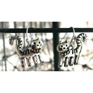 Cat Earrings Handmade Metal Kitty Lover Birthday Gift Hypoallergenic Hooks New