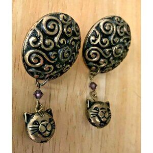 Cat Earrings Handmade Vintage One of Kind New Purple Crystals Kitty Lov…