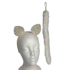 Cat Ears Headband Tail White Sparkly Ears Faux Fur Tail Accessories Halloween