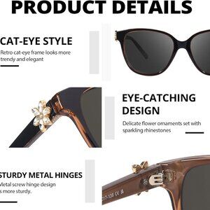 Features: Sleek cat-eye design that adds a playful yet elegant touch to any look. Polarized UV400 protection lenses block glare and harmful UV rays, making them perfect for driving, outdoor adventures, or fashion statements. Ultra-lightweight and smooth-edged for all-day comfort. Suitable for casual, beach, travel, or everyday wear.