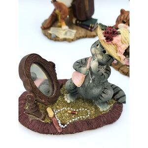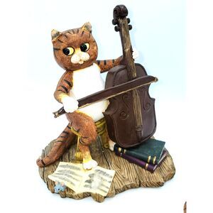 Cat Figurines Resin Set of 3 -Playing Cello/ Dressing up/ Broken Vase Cat Lover