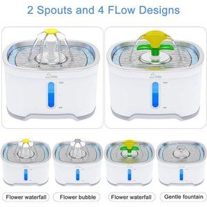 🧿2 spouts and 4 modes: A source of running water encourages pets to drink more rather than still water. This fountain has 2 spouts and 4 different drinking modes. It provides more options for your pets and attracts them to drink more water.