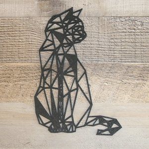 Cat Geometric 8" x 5" Wall Decor 3D Printed Wall Art Cat Feline Kitty Bl…