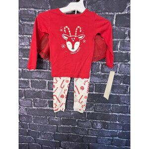 Cat & Jack 2T Reindeer Candy Canes Snowflakes Long Sleeve Top & Leggings