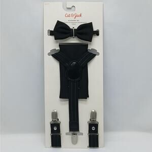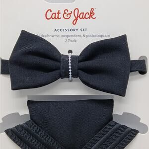 Cat & Jack 3 Pc Bow Tie Pocket Square Suspenders Boys Black Formal Accessories