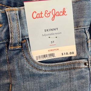 Three pairs of New With Tags jeans/ jeggings. Target brand Cat & Jack. Pink cords, heart denim and distressed denim, all size 3T.