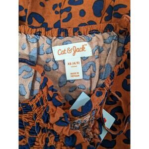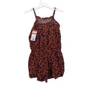 Cat & Jack Animal Print Romper XS Orange Girls Smocked Sleeveless One Piece 4/5
