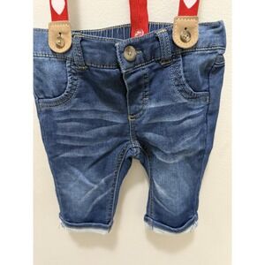 Cat & Jack Baby Boys Blue Jeans with Red Heart Suspenders Size 0–3M Valentines