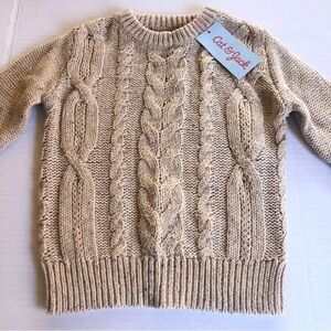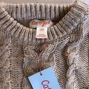 Cat & Jack Baby Cable Knit Oatmeal Heather Crewneck Sweater Size 18 M