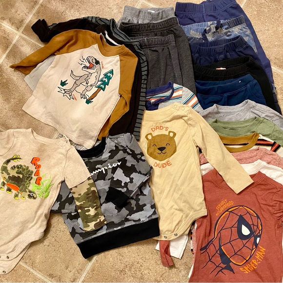 Variety of long sleeve tees, pants, & sweatshirts. Fun graphics and designs. Comfortable and stylish. All size 18 months.