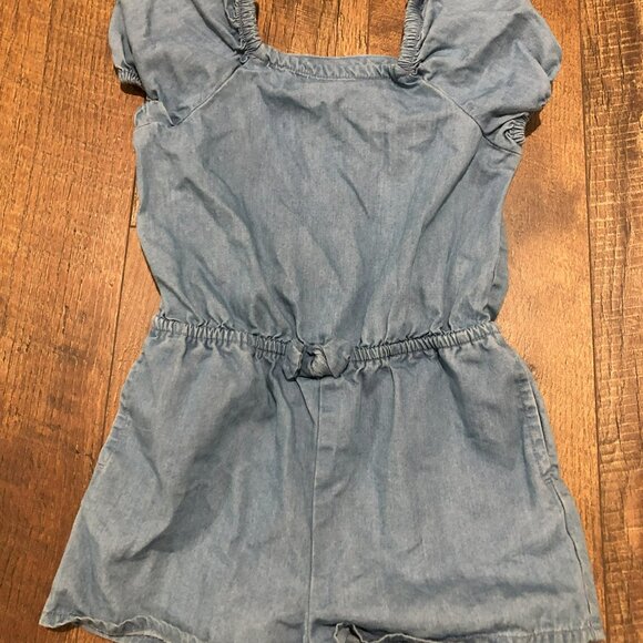 Cat & Jack Baby Girl Blue Jean Romper with elastic waist 18 months