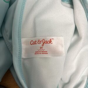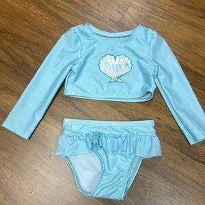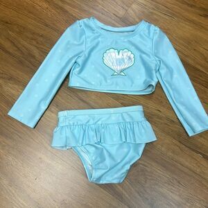 Cat & Jack Baby Girls 2 Piece Swim Suit Blue Seashell Long Sleeve Ruffle Sz 2T