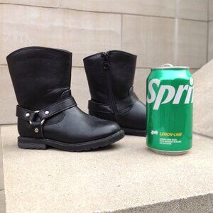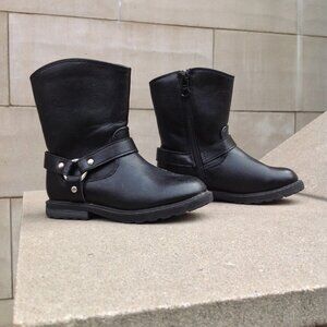 Cat & Jack Black Boots Size 8 w Side Strap+ Metal Silver Ring