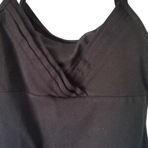 Sleek and versatile dance leotard, designed for young dancers and gymnasts. This black leotard features a classic tank style with thin straps and a stylish V-neckline with subtle pleating detail. The back of the leotard has a cute cutout design, adding a touch of flair while maintaining practicality for movement. Perfect for ballet classes, gymnastics practice, or dance recitals, this leotard provides comfort and flexibility for any activity.