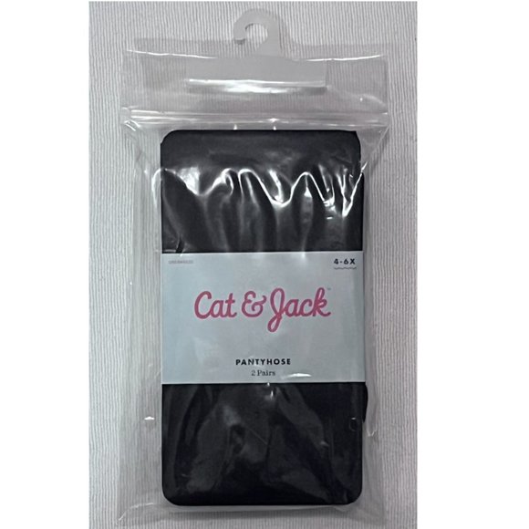 Cat & Jack Black Pantyhose ~ Size 4-6x ~ 2 pairs ~ Footed
