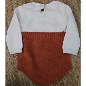 Cat & Jack Bodysuit Baby Girls 3-6 Months White Burnt OrangeLong Sleeve Collared