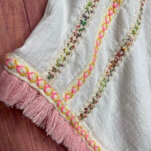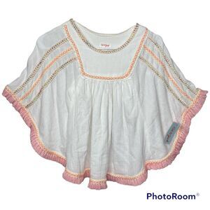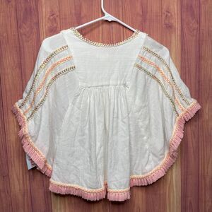 Cat & Jack Boho Poncho Sweater Lightweight Pink Fringe Metallic Trim Size 4/5