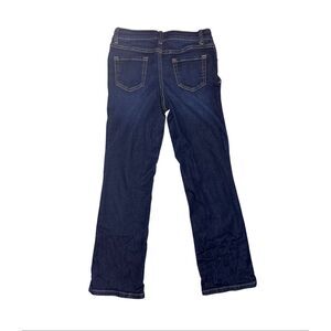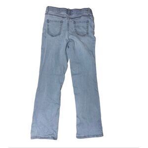 Two pair of bootcut jeans. Light and medium wash. Five pockets. Belt loops. Button and zip closure. Cotton/polyester/lyocell/rayon/spandex. Size: 10. Preowned in good condition.