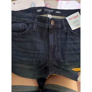 These Cat & Jack boy's blue jeans size 10 husky are made from 100% cotton denim with a dark wash. They feature a straight leg style and are new with tags. The jeans have two adjustment spots at the waist, are machine washable, and have pockets. Ideal for play and school, they are suitable for all seasons.
