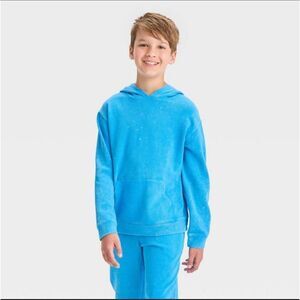 Cat & Jack Boy’s Blue Light Wash Pullover Hooded Sweatshirt Extra Small 4/5