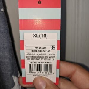 Cat & Jack Boys Cruise Blue White Stars Button Up Dress Shirt XL 16