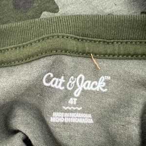 Cat & Jack Boys Short Sleeve Crewneck Camouflage Print T-Shirt Green Camo 4T NWT New With Tag Brand: Cat & Jack Size: 4T Color: Green Camo Camouflage-print short-sleeve tee Cool and comfy, this Short-Sleeve Camouflage Jersey-Knit T-Shirt from Cat & Jack™ is sure to excite your little one. Tailored in a casual fit, this short-sleeve T-shirt is crafted from a soft jersey-knit fabric for all-day comfy wear. Falling below the hip, this crewneck tee features a green camouflage print, making it a fun pairing with a variety of their bottoms. Recycled polyester No Collar, Crew Midweight Fabric Machine washable SKU - 42E23