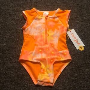Cat & Jack Brand Girl's size 12 NWT Swimsuit Orange Floral