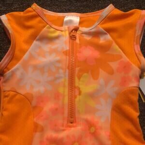 Cat & Jack Brand Girl's size 12 NWT Swimsuit Orange & Pink Floral Zipper
