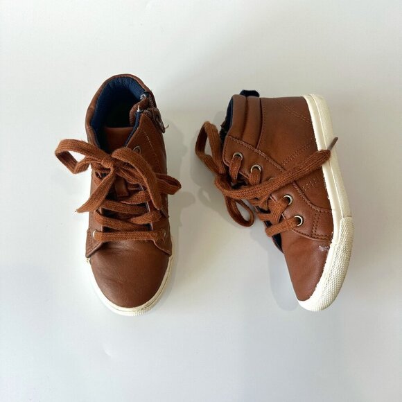 Cat & Jack Brown Faux Leather High Top Lace Up & Side Zipper Sneakers Shoes