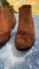 Stylish brown boots for kids. Wear on toes and around top of left boot. Smoke free home. Faux suede feel. Great for fall! Slight heel.