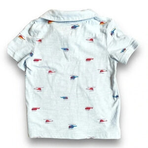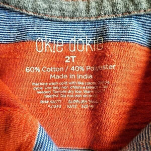 Two toddler boys’ polo shirts. Light blue with sailboat pattern from Cat & Jack. Faded red and blue striped from okie dokie. Both 2T.