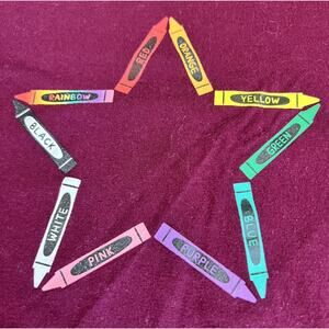 Size 3T Cat & Jack long sleeve burgundy tee. Adorable crayons in the shape of a star print. No stains or flaws. Very good used condition.
