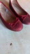 Chic flats with a glittery finish. Features a cute bow accent. Ideal for any occasion. Dark red, girls size 1. Worn once for an indoor photo shoot. Could work well for a Wizard of Oz Dorothy costume!