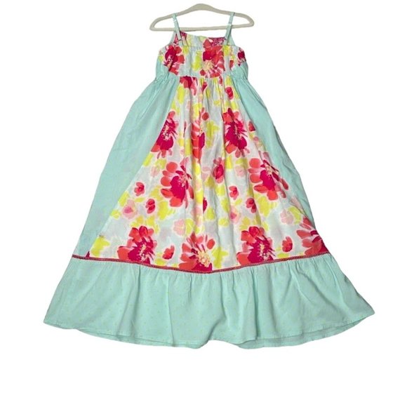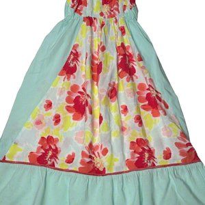 Cat & Jack Dress Kids XS 4/5 Rayon Blue Yellow Flowers Ruffles A line