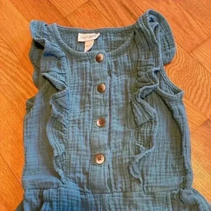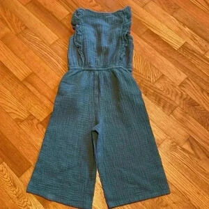 Toddler Girl Cat & Jack Dusty Green Sleeveless Adaptive Wide Leg Jumpsuit in Size XS (4-5). Nice gauzy, cotton fabric with pockets, ruffles and buttons on the front. Great pre owned condition.