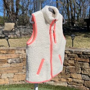 Cat & Jack Fuzzy Cream Vest with Coral Trim Front Zipper and Three Pockets
