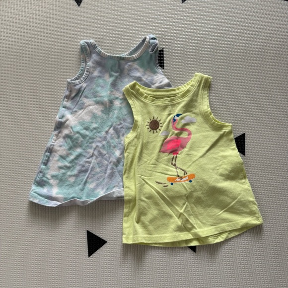 Cat & Jack & GAP|baby girl tank bundle in tie dye & flamingo print•••12-18M