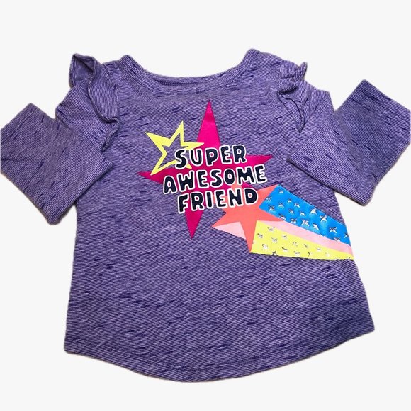 Cat & Jack Girl Shirt Long Sleeve Purple "Super Awesome Friend" Sz 2T