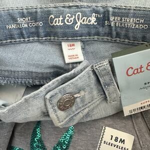 Cat & Jack Girls 18M Summer 3pc Set – Pineapple Tank, Denim Shorts, Scooter Skirt