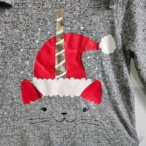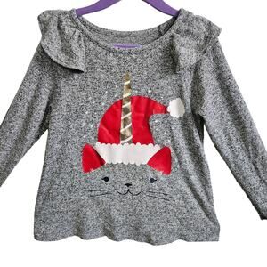 Cat & Jack Girls 5T Unicorn Santa Cat Long Sleeve Shirt Gray Ruffle Christmas