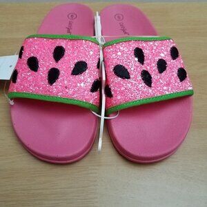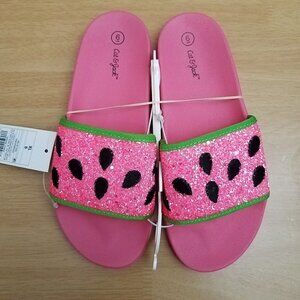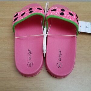 Cat & Jack Girls' Size 6 Pink Embellished Watermelon Pool Slide Glitter Sandals