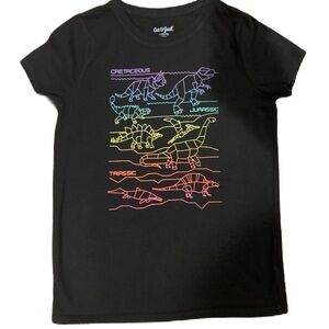 Cat & Jack Girl’s Black Short Sleeve Dinosaur Graphic Tee Size L- 10/12